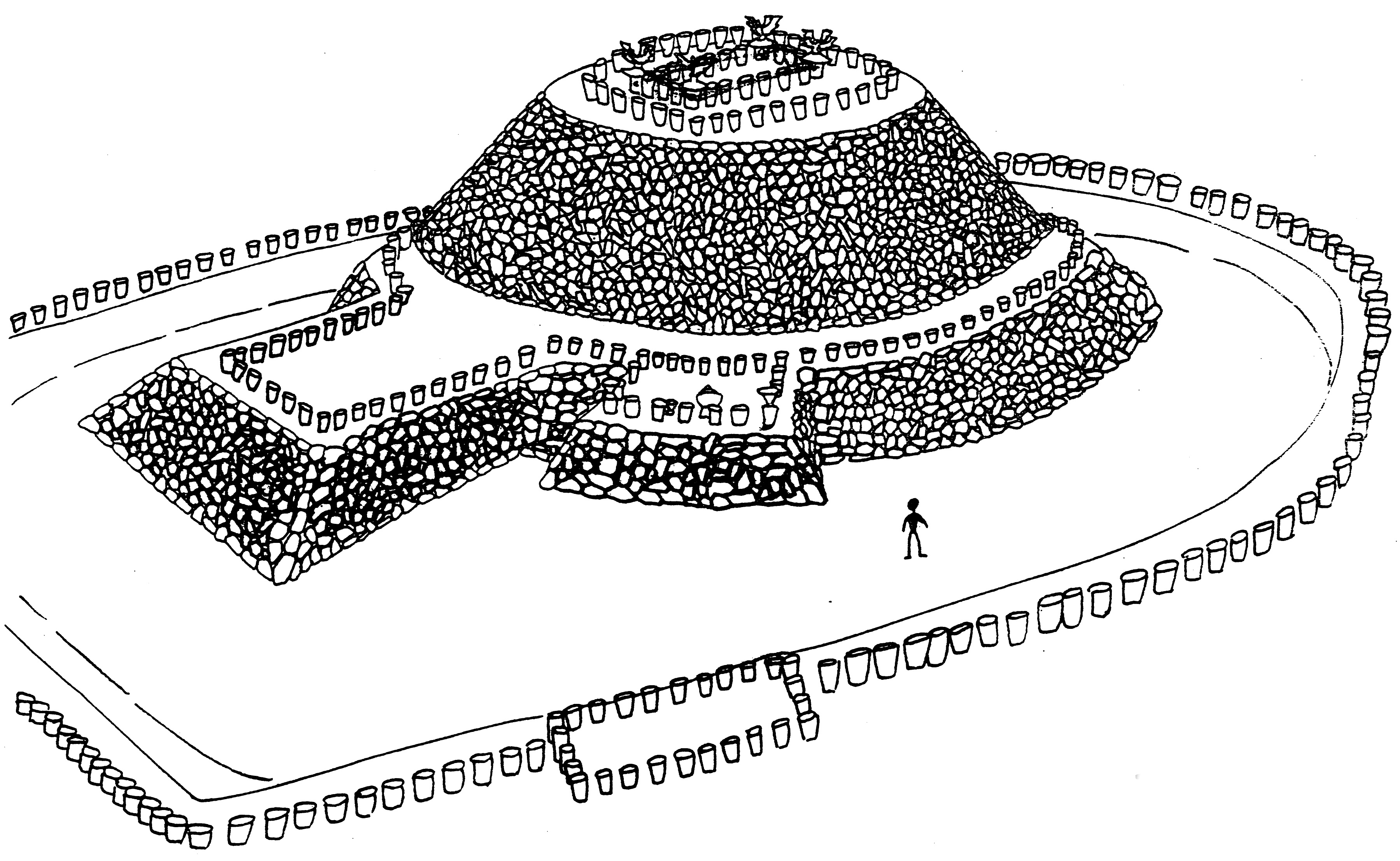 供養塚古墳は、墳丘の周囲に馬蹄形の周濠がめぐらされた、後円部径約37m、前方部幅約22m、全長約70mの帆立貝式の古墳です。葺石があり、多くの形象埴輪が出土しており、古墳時代中期(5世紀終頃)に築造されたものと考えられています。